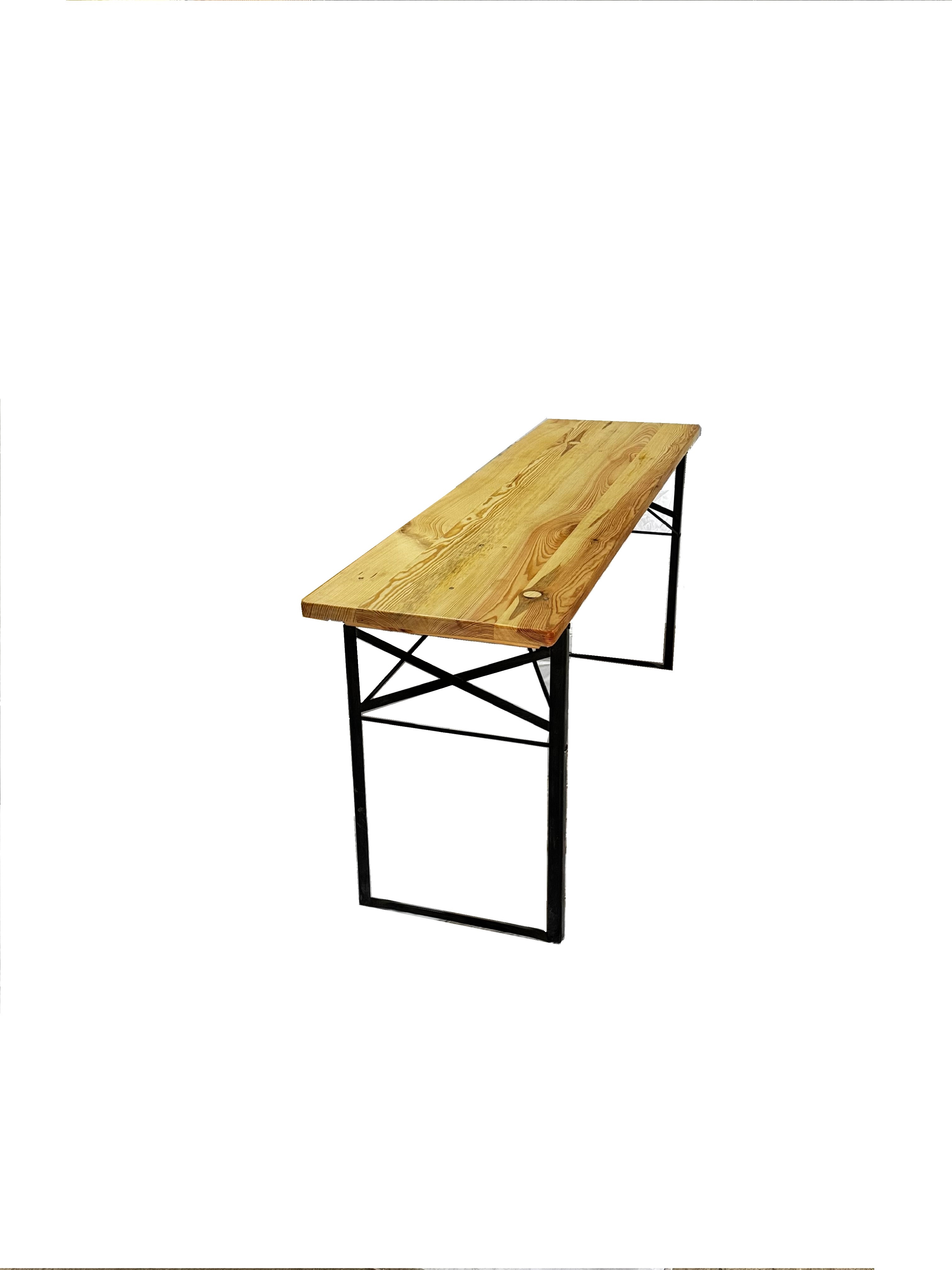 Столи виготовлені з масиву дерева сосни і металевих ніжок.