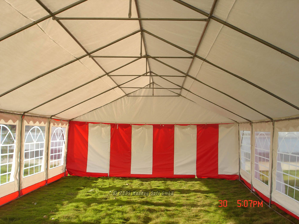 Дах намети складається з одного шматка ПВХ. Сталева конструкція даху забезпечує чудову стабільність і статику наметі.