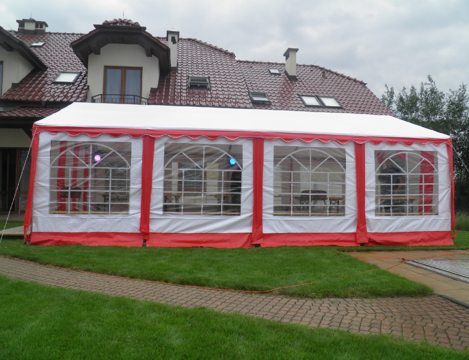 Тентова складова павільйону виготовляється з водонепроникної тканини ПВХ різних кольорів. Доступні кольори: біло-червоний, біло-зелений, біло-синій, біло-жовтий, білий, біло-сірий.